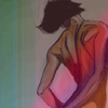 Description: a painting of a nude woman from the back by deborah batt, gradiented over.